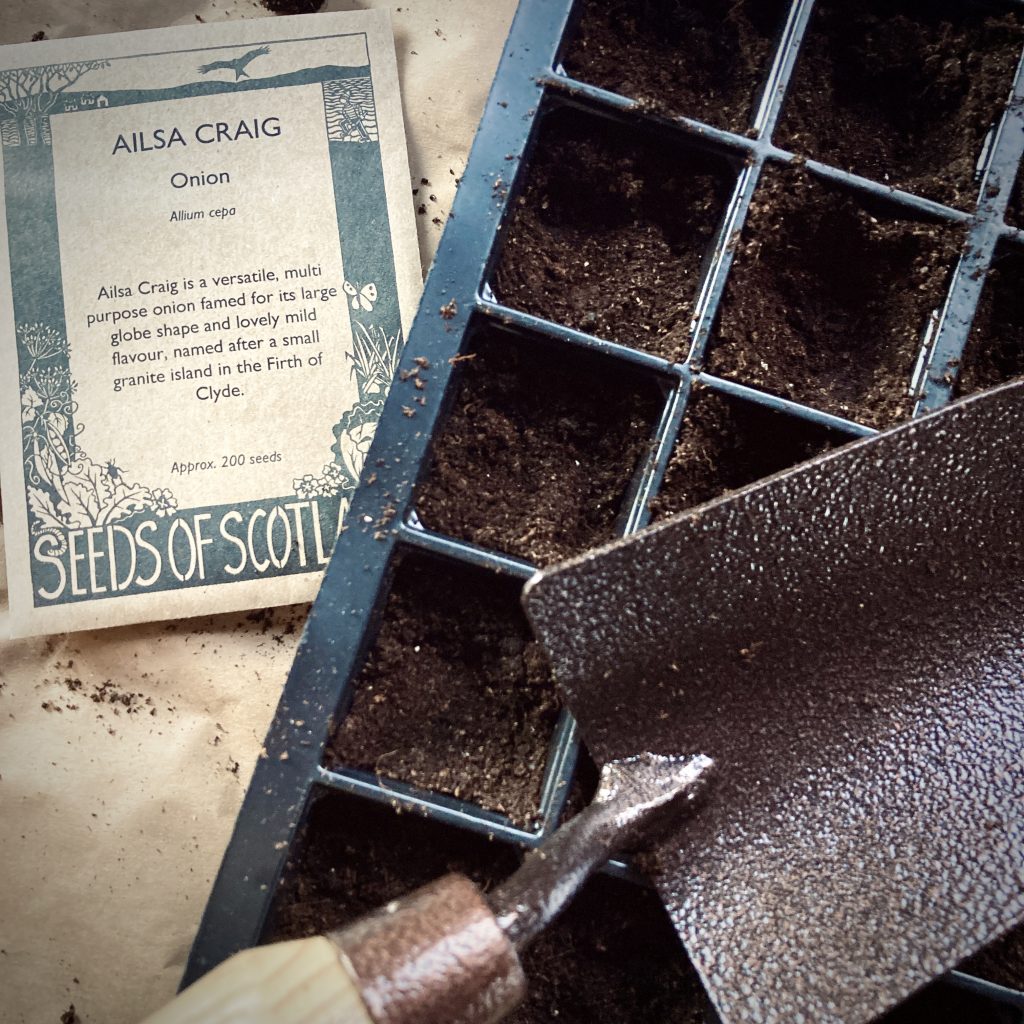 January’s planting consisted of sowing onion, kale and coriander seeds indoors. I don’t have a greenhouse or potting shed yet, so these are sat on the window ledge of the south facing bedroom. My hope is that they’ll get a good start and be ready to transplant outdoors early in the spring. I have purchased the seeds from Seeds of Scotland who specialise in open pollinated seeds that do well in the Scottish climate.