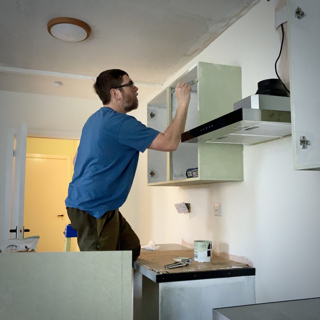 January couldn’t pass without a mention of painting. To say that painting the kitchen has been one of those ongoing tasks that I can dip in and out of would be an understatement. Each morning and evening is spent putting a coat of something onto a wall, door, skirting or cabinet. Each door and cabinet has required two coats of primer and undercoat, and two coats of acrylic (Farrow & Ball “Vert de Terre No.234” if you were wondering) with drying time and sanding between each you can add up the number of days left…